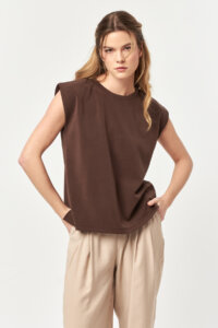 Designed with a modern, minimal attitude, Power Flow Bitter Sleeveless Modal T-Shirt features a clean silhouette with a strong, structured shoulder line.