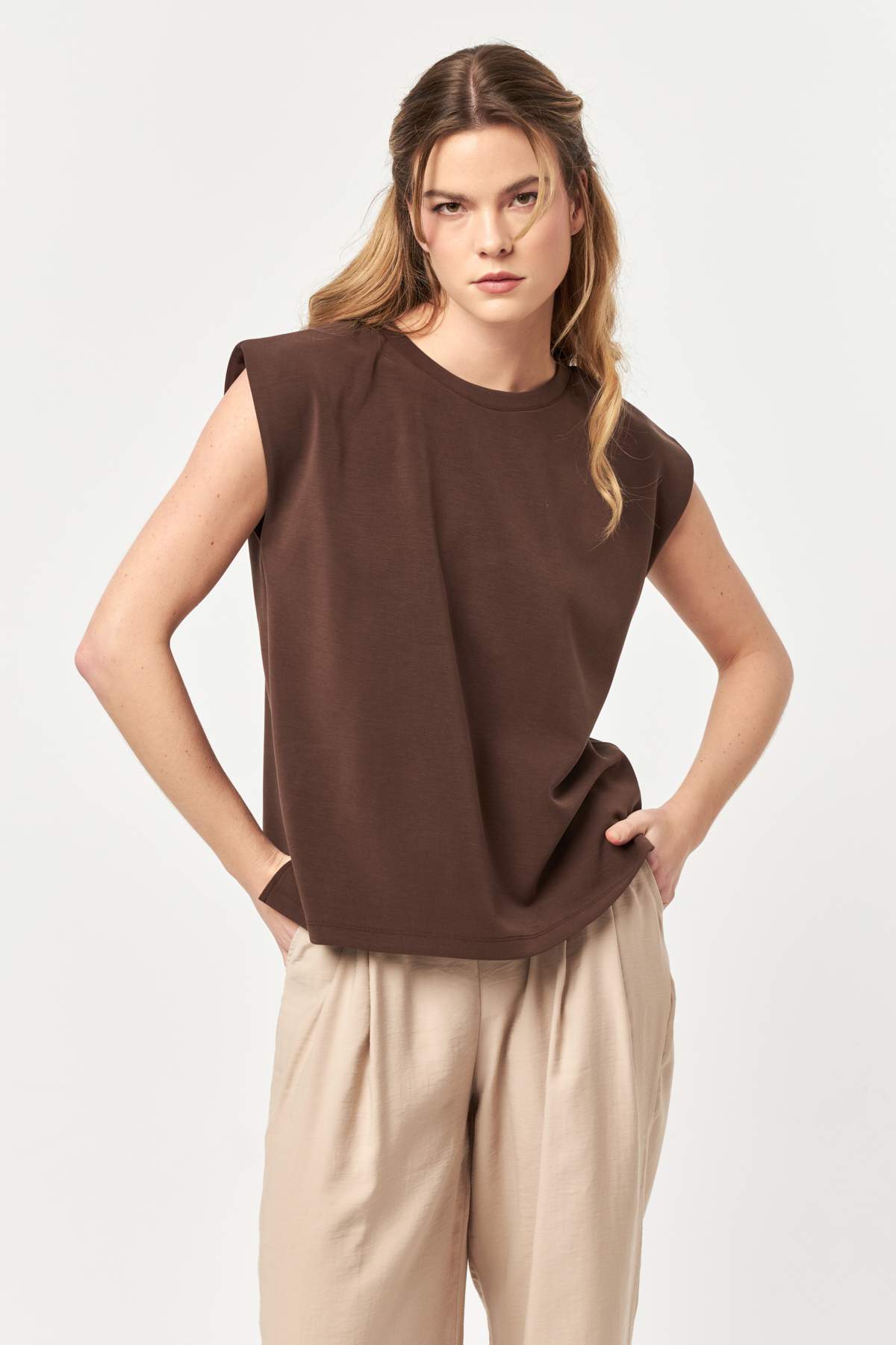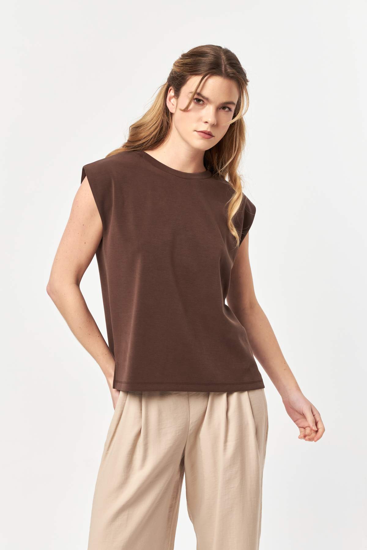 The soft modal-blend fabric offers a smooth, breathable feel, while the sleeveless cut allows natural movement throughout the day.