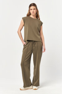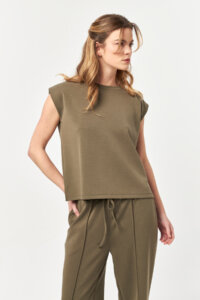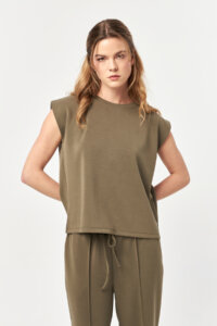 Designed with a modern, minimal attitude, Power Flow Khaki Sleeveless Modal T-Shirt offers a clean silhouette with a strong, structured shoulder line.