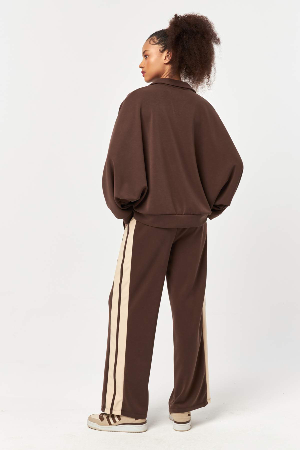 Paired with straight-leg trousers designed with an elastic waistband, the set delivers all-day flexibility and comfort without compromising style.