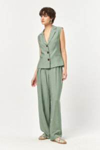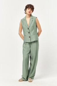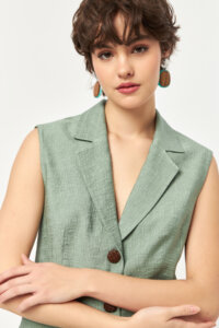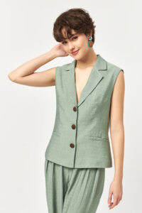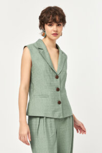 The Mold Powder colourway brings a soft, muted warmth to the sleeveless tailored silhouette, combining earthy undertones with a gently powdery finish. This refined shade highlights the fabric’s natural texture while maintaining a light, breathable feel.