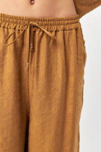 Featuring an elasticated waistband with adjustable drawstring, the pants provide a comfortable, flexible fit with effortless ease. The wide-leg cut allows for natural movement, while side pockets add everyday functionality without interrupting the clean lines. Lightweight and breathable, this piece is ideal for coordinated sets, transitional styling, and refined daily wear.
