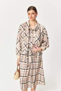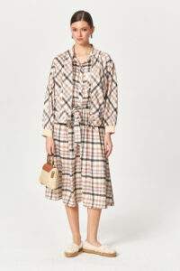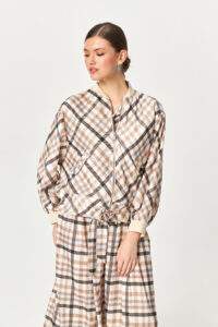 • Fine plaid pattern with tonal contrast