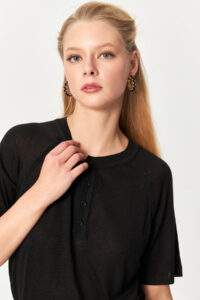 Soft Henley Knit Black Top