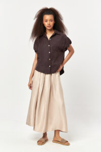 - Relaxed-fit silhouette with a fluid drape