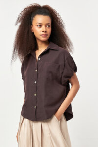 - Short sleeves with softly folded cuffs