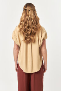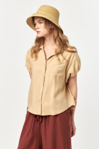 Crafted from a soft and breathable modal-blend fabric, this short-sleeve shirt offers a lightweight feel and a naturally fluid drape. The relaxed silhouette is balanced with a classic button-down front and clean shirt collar, creating an easy yet polished look. Finished in the warm Latte tone, this piece brings a soft, refined character that transitions effortlessly from daytime comfort to relaxed city styling.