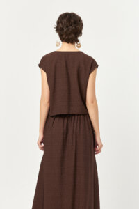 The Solace Bitter Fluid Long Skirt features a deep, rich tone paired with an elongated, flowing silhouette. Crafted from a lightweight woven fabric, the design offers effortless comfort with its elasticated waistband and adjustable drawstring detail. Subtle side slits enhance movement, adding a refined yet relaxed character to everyday and summer-ready styling.