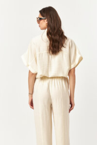The Solace Ecru Relaxed Pants are defined by their soft, natural tone and lightweight woven texture. Designed for effortless comfort, the relaxed silhouette allows easy movement, while the elasticated waistband and adjustable tie provide a flexible, secure fit. A timeless, breathable essential that brings ease and simplicity to everyday and warm-weather styling.