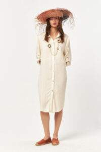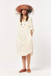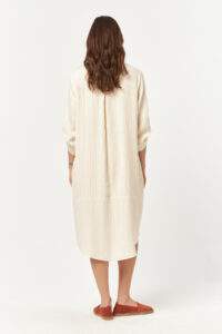 The Solace Ecru Stripe Midi Dress offers a calm, natural look defined by its soft stripe texture and relaxed silhouette. Designed to move effortlessly with the body, this piece delivers everyday comfort while maintaining a clean and refined aesthetic. A timeless option for warm days, seaside moments, or city ease.