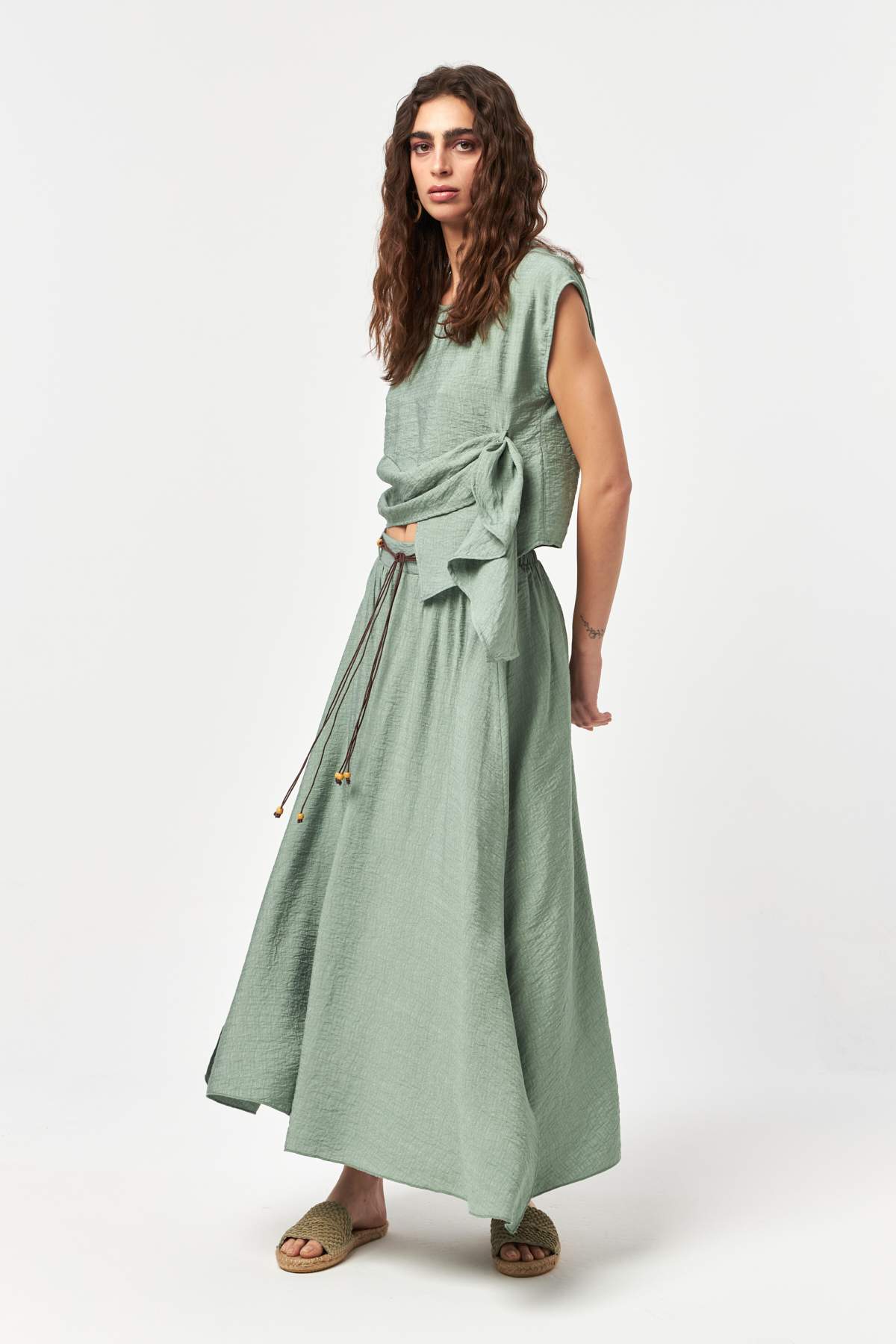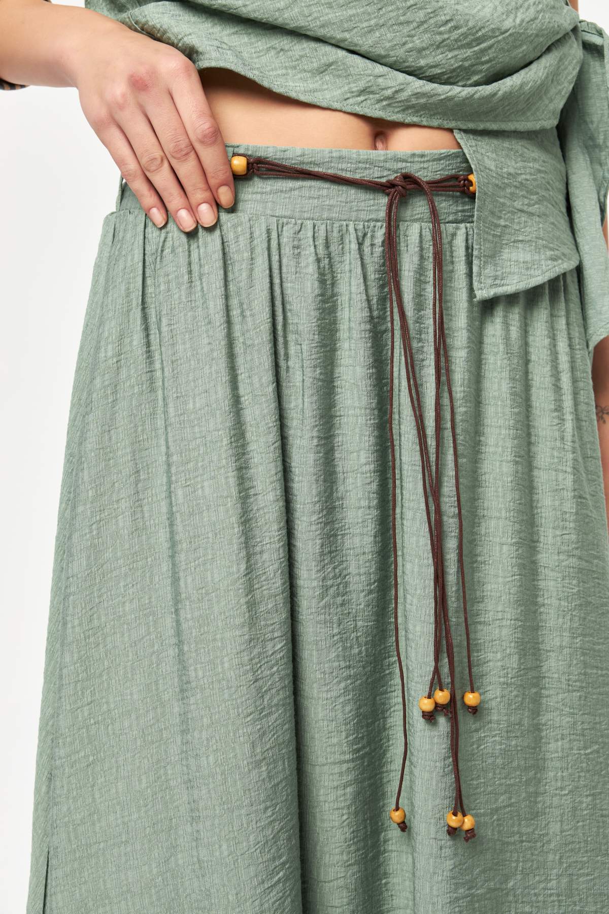 - Adjustable drawstring tie detail at the waist