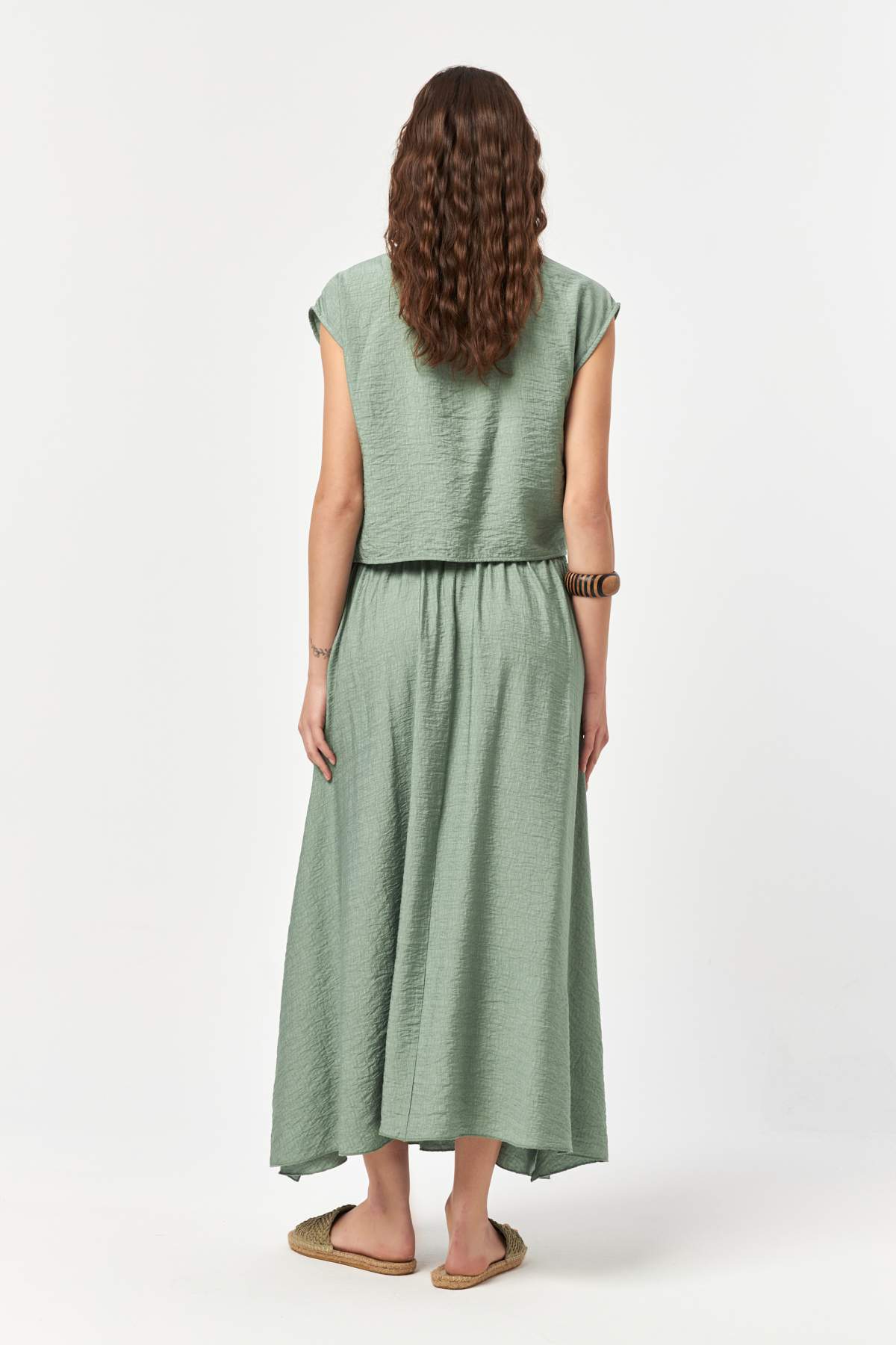 - Long skirt with fluid, relaxed silhouette