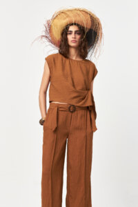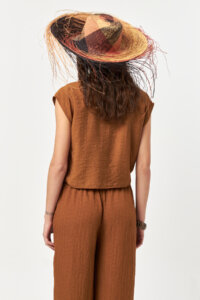 The Solace Side Tie Blouse in Snuff presents a warm and natural look with a softly draped, modern silhouette. Crafted from a lightweight woven fabric, the asymmetric side tie detail creates fluid movement while gently defining the waist. The relaxed fit, cap sleeves, and clean neckline offer everyday comfort and ease. The earthy Snuff tone adds depth and versatility, making this blouse easy to style with matching bottoms or contrasting neutrals for a balanced, effortless look.
