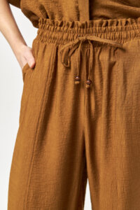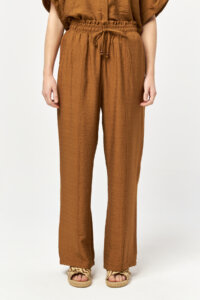 The Solace Snuff Relaxed Pants stand out with their warm, earthy tone and softly textured woven fabric. Designed for ease and comfort, the relaxed silhouette moves naturally with the body, while the elasticated waistband and adjustable tie provide a flexible, effortless fit. A versatile piece that brings depth and warmth to everyday and summer-ready styling.