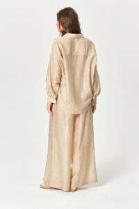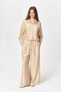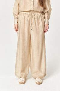 Stone Embellished Sheer Wide-Leg Beige Pants