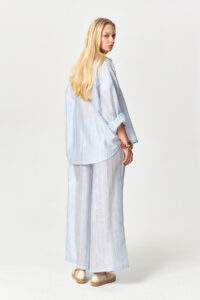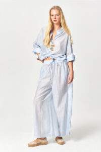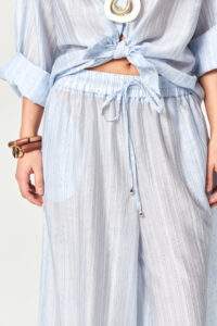 Stone Embellished Sheer Wide-Leg Blue Pants