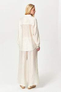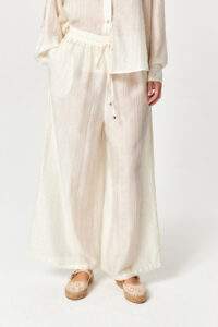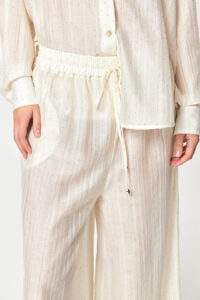 Stone Embellished Sheer Wide-Leg Off White Pants