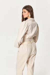 - Long sleeves with soft gathered volume