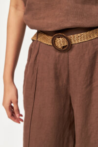Designed for effortless summer dressing, the Sunbelt Wide Leg Linen Pants combine a relaxed silhouette with refined detailing. Crafted from lightweight linen, this style features a flattering high waist and a fluid wide-leg cut, finished with a natural woven belt that elevates the look with an artisanal touch.