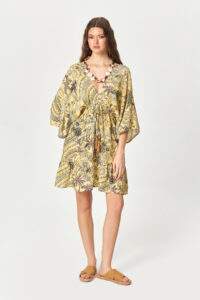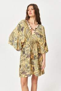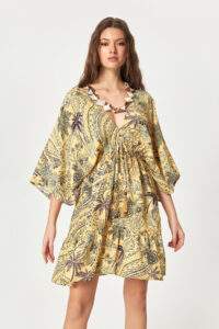 Tropical Print V-Neck Mini Dress