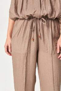 - Adjustable drawstring waist finished with decorative beads