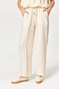 - Adjustable drawstring waist finished with decorative beads
