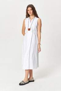 White Soft Wrap Cotton Midi Dress