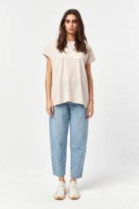 - Short sleeves with easy drape